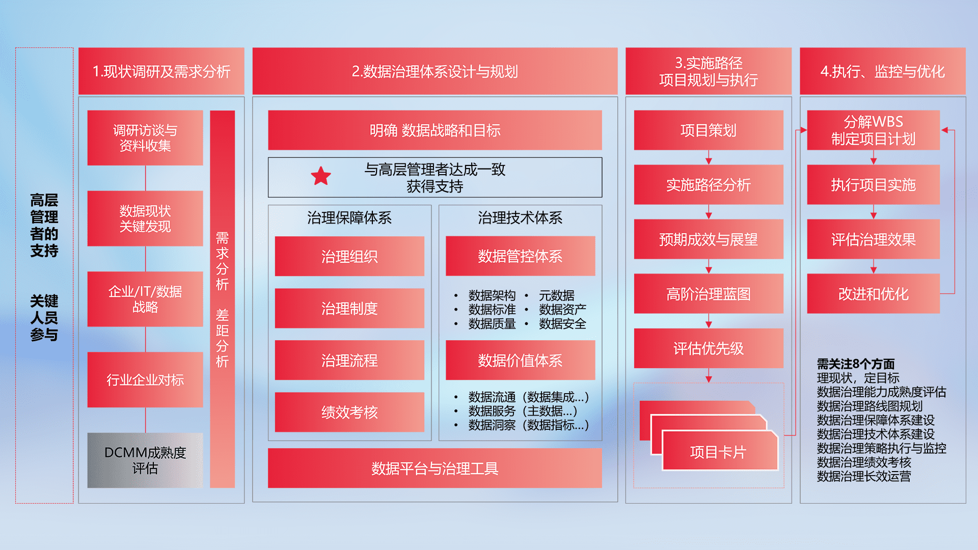 制定并执行统一的数据标准,,规范数据定义和格式,,消除冗余和不一致性,,,,实现跨部门和跨系统的数据一致性,,,为企业提供标准化的数据基础。。。